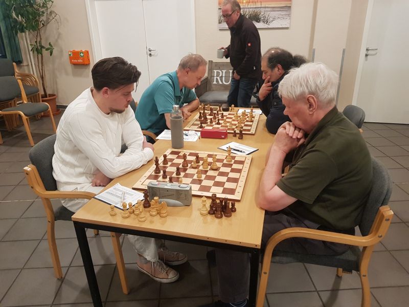 Damit kam es am 14.´ten Oktober zu einer Art Finale mit den schwarzen Farben gegen Jürgen Jürs mit zwei Punkten aus drei Partien. Jürgen spielte mit seinen 83 Jahren (herzlichen Glückwunsch zum heutigen Geburtstag!) die beste Saison seit langem, je oller desto doller, auch wenn er selbst immer behauptet sein aktueller Erfolg sei nur Glück. Da wissen die Gegner aber Anderes zu berichten!