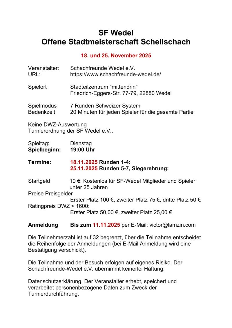 Offene Wedeler Schnellschachmeisterschaft 2025
